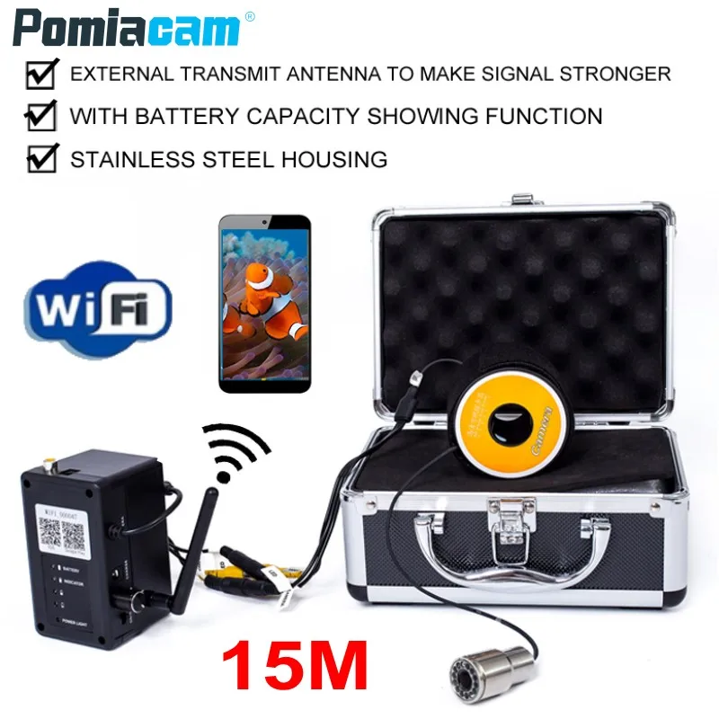 New Product WF13WSL 2.4G Wireless Wifi Underwater Fishing Camera 12pcs LED 15M Fish Finder System with Video Re