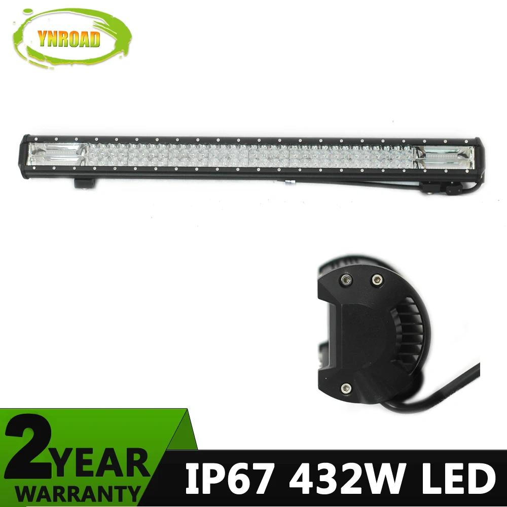 Best Product YNROAD 432w 32inch Tri-Row Led Light Bar work light Driving Offroad Light combo for fishing truck b